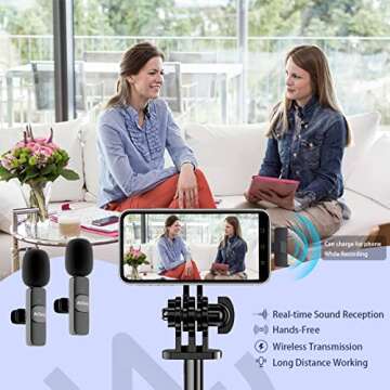 AnChang 2 Pack Wireless Lavalier Microphone for iPhone Wireless Microphones Plug-Play Lapel Mic Built-in Noise Reduction Chip Mini Microphone for Video Recording, Live Stream, Vlog, YouTube, TikTok