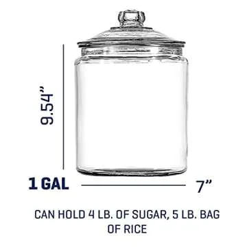Show moreIntroducing the **Anchor Hocking 1-Gallon Heritage Hill Jar with Lid**, a perfect blend of functionality and elegance that brings a touch of class to your storage needs. This set of two stunning glass jars is designed with thick side walls for unparalleled durability and stability, ensuring they can withstand everyday use while maintaining a refined appearance. Made right here in the USA, these jars stand out as a healthy alternative to plastic storage solutions, as they do not discolor, retain odors, or leach harmful chemicals into your food. The wide mouth opening allows for effortless scooping, while the oversized glass knob lid ensures easy access and a secure seal. Each jar matches practicality with a timeless design, making them ideal whether for organizing your pantry, enhancing your laundry room, or showcasing snacks on your bar. Elevate your space with this premium storage solution that perfectly balances style and utility.