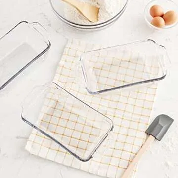 INCLUDES: This glass bakeware set contains (3) basic loaf dishes. Perfect for baking all manner of dishes