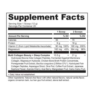 Ancient Nutrition Collagen Powder Protein, Multi Collagen Protein Beauty + Sleep w/Vitamin C, Vanilla Chai, 20 Servings, Hydrolyzed Collagen Peptides Supports Skin and Nails, 8.7oz