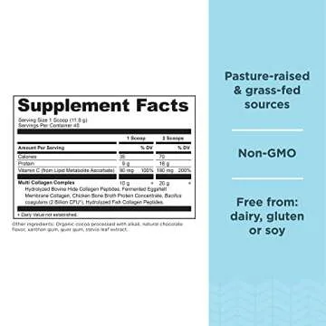 Show moreElevate your health routine with Ancient Nutrition's Multi Collagen Protein Powder in delectable chocolate flavor! Designed for those who seek to enhance their well-being, this powerful supplement packs a punch with a unique blend of hydrolyzed collagen types I, II, III, V, and X sourced from four nutrient-rich food origins: beef, chicken, fish, and eggshell membrane. Each tub contains 45 servings, providing a convenient way to incorporate collagen into your daily life, along with essential Vitamin C to boost your immune function and collagen absorption.
