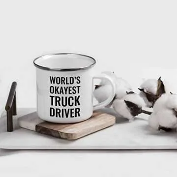 Discover the perfect blend of style and functionality with the Andaz Press 11oz. Stainless Steel Campfire Coffee Mug. This unique mug, adorned with the cheeky phrase "World's Okayest Truck Driver," is designed for those who love a touch of humor with their morning coffee or evening haul. Crafted from durable stainless steel with a sleek, sublimation coated white gloss finish, it stands up to the rigors of any outdoor adventure while ensuring your beverages stay at the perfect temperature....