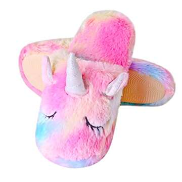 Show moreIntroducing the cozy and adorable unicorn slippers that every child will love! Made from a comfortable coral fleece upper and lined with ultra-soft coral plush, these slippers are perfect for keeping little feet warm and snug during the chilly Autumn and Winter months. The breathable knitted cotton upper ensures that kids can wear these slippers comfortably all day long without overheating.