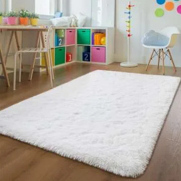 Andecor Soft Fluffy Bedroom Rugs, 5 x 8 Feet Indoor Shaggy Plush Area Rug for Boys Girls Kids Baby College Dorm Living Room Home Decor Floor Carpet, White