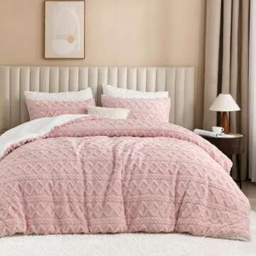 Andency Fluffy Sherpa Full Comforter Set, Super Soft Blush Fleece Warm Bedding for Winter, Luxury Jacquard Boho Thick Fuzzy Plush Bed Set 3 Pieces(1 Shaggy Comforter, 2 Pillowcases)