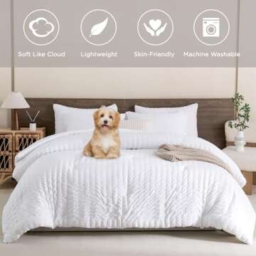 Andency King Size Comforter Set White, 3 Pieces Seersucker Bedding Comforter Sets (1 Textured Comforter & 2 Pillowcases), Lightweight Microfiber Down Alternative Bed Set (104x90 inches)