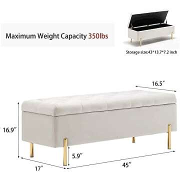 Andeworld Velvet Storage Bench, Modern Bedroom Bench, Upholstered Tufted Large Settee Ottoman with Storage Bench for Bedroom,Living Room,Entryway, Ivory