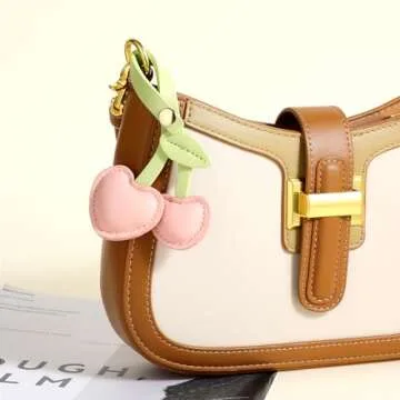 Andibro Cherry Bag Charm - Cute PU Cherry Key Charms Bag Accessory for Purses Bags Handbags (Pink)