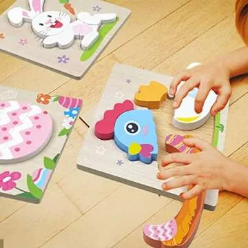 Anditoy 4 Pack Easter Wooden Puzzles for Kids Toddlers Easter Toys Easter Basket Stuffers Gifts Party Favors