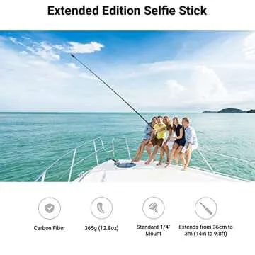 Show moreExperience the freedom of creativity with the Andoer Insta360-1 New Version Extended Edition Invisible Selfie Stick. Crafted from lightweight yet robust carbon fiber, this selfie stick is designed to elevate your adventure photography with its extended length of 36cm to 300cm. No more worrying about your arm’s length—captured moments are now limitless! The stick features a universal 1/4 inch screw mount, making it compatible with various models including the Insta360 X3, ONE RS (1-Inch 360 excluded), X2, R, and ONE X. Say goodbye to troublesome setups and hello to quick, seamless shoots—because your memories deserve the best.