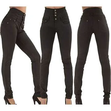 Andongnywell Women Button High Waist Skinny Jeans Colombian Design Butt Lift Jeans Plus Size Stretch High Rise Skinnys
