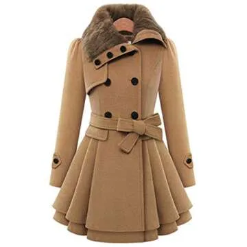 Andongnywell Women's Double Breasted Pea Coat Winter Mid-Long Trench Coat with Belt mid long tweed woollen Overcoats (Camel,Medium)