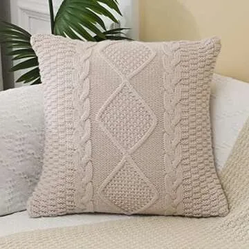 ANDUUNI Decorative Knitted Throw Pillow Covers Double-Cable Sweater Square Warm Cushion Cover for Sofa Bedroom Home Accent Decor