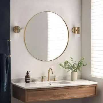 ANDY STAR Round Gold Mirror, 30'' Brass Mirror with Brushed Gold Frame, Wall Mounted Stainless Steel Metal Frame Round Mirror for Bathroom, Living Room, Bedroom