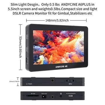 Show moreUnlock your creative potential with the **Andycine A6 Plus V2 6" Touch Screen Camera Field Monitor Bundle!** This stunning monitor boasts a crisp 5.5-inch IPS touchscreen, providing a **native resolution of 1920x1080p** that reveals every detail with sharp clarity and vibrant color. Perfectly designed for both gimbal and handheld stabilizers, this lightweight companion is ideal for videographers on the go. With a simple touch, you can access essential functions quickly, enhancing your shooting experience and making framing a breeze.