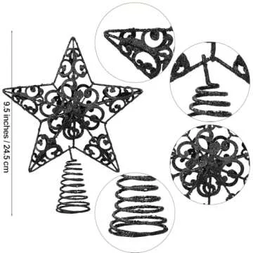 Aneco 10 Inches Metal Glittered Christmas Tree Topper Star Treetop Decoration for Christmas Home Decor, Black