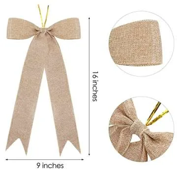 Aneco 16 Pieces Christmas Burlap Ribbon Bows Festival Decoration Bows Xmas Hanging Ribbon Bows for Christmas Home Decor, 16 x 9 Inches