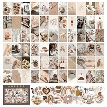 ANERZA Beige Boho Wall Collage Kit with 70 Aesthetic Pictures and Stickers for Teen Girl's Bedroom