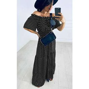Show more Introducing the Angashion Women’s Off Shoulder Ruffle Casual Maxi Dress – a staple addition to any fashionista’s wardrobe! This gorgeous dress effortlessly combines elegance with comfort, making it a perfect choice for various occasions. Crafted with a lightweight and breathable fabric, the maxi dress features delightful polka dot and floral prints that bring a fresh vibe to your look. The flattering off-shoulder design allows for versatile styling, whether you prefer a boho-chic flair or a more classic appearance.