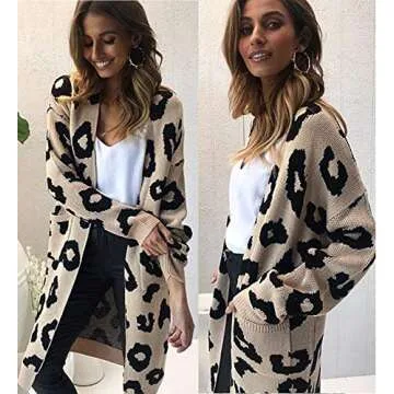 Angashion Women's Cardigan Long Sleeves Leopard Print Knitting Sweater Open Front Warm Outwear Coats Khaki S