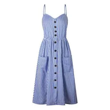 Concerned about the buttons? While most are purely decorative, their aesthetic appeal adds a unique touch to the dress without compromising practicality. The flowy fabric allows for effortless movement, perfect for any season from Spring to Fall, making it a year-round staple. Pair this lovely dress with sandals for a relaxed vibe or elevate your look with heels for an evening out.