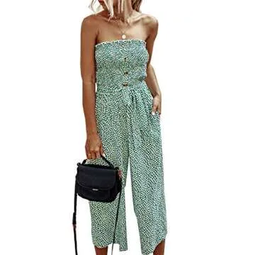 Angashion Women’s Jumpsuit-Casual Off Shoulder Sleeveless Ruffle Button Belt Wide Leg Jumpsuits Rompers Summer