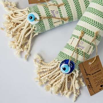 Ange d'Or Lucky Turkish Hand Towel Set of 2| 100% Cotton 39 x 19 Inches | Decorative Peshtemal Hand Towels for Bathroom | for Hand, Face, Hair, Gym, Yoga, Tea, Kitchen and Bath (Green)