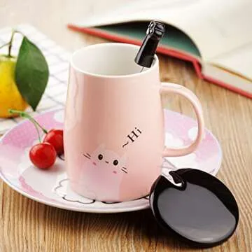 Angelice Home Cute Cat Mug, Ceramic Coffee Mug with Spoon
