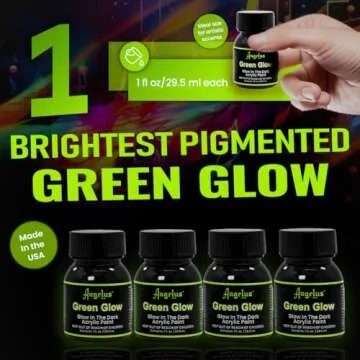 Show more Unleash your creativity with Angelus 1oz Neon Green Glow Paint, the perfect vibrant solution for all your art and craft needs. This remarkable paint is not just stunning in its appearance; it delivers the brightest glow, making your projects shine through the night. Crafted in the USA, this non-toxic formula is safe for artists of all ages and is designed to turn ordinary creations into extraordinary glowing masterpieces.