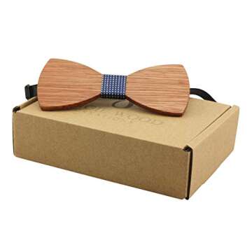 Angie Wood Creations Large Round Zebrawood Bow Tie with Dotted Dark Blue Centre - Adult Size