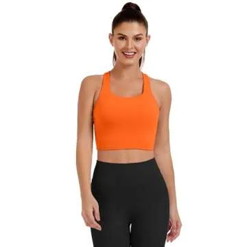 AngiMelo Womens Longline Sports Bra Square Neck Workout Tops Support Crop Tank Strappy Yoga Top Built in Bra Teens