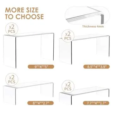Anglelife 8 Pieces Large Display Risers, 4" Wide Clear Rectangular Display Shelf for Showcase Collectibles, Acrylic Display Stand for Retail Desktop Jewelry Funko Pop Figures