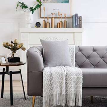 Anickal Light Grey Pillow Covers Set of 2 - Luxurious Farmhouse Cushion Covers