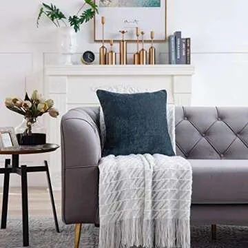 Anickal Midnight Blue Pillow Covers 18x18 Inch Set of 2 Solid Rustic Farmhouse Decorative Throw Pillow Covers Square Cushion Case for Home Sofa Couch Decoration
