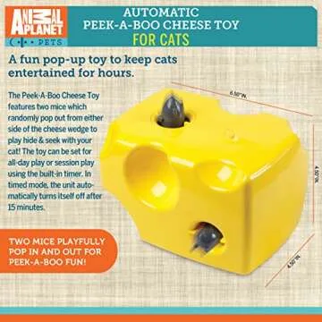 ANIMAL PLANET Automatic Peek-a-Boo Mouse & Cheese Interactive Toy for Cats, Features Built-In Auto Off Function, Pop Out Mice For Hours Of Entertainment, All Day Play W/Away Mode, Battery Operated