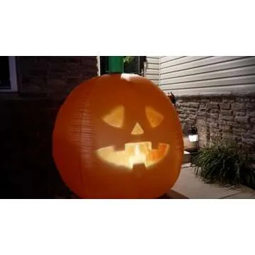 Show more Get ready to add a splash of fun to your Halloween decorations with the ANIMAT3D Inflatable Jabberin' Jack. Towering at an impressive 5 feet tall, this animated pumpkin is designed to bring joy and laughter to Halloween festivities for children and adults alike. With its 56-inch HD screen and integrated projector, it not only inflates but also entertains with 80 minutes of engaging animations and audio. Let the friendly witch and goofy characters delight trick-or-treaters as they sing and talk – this adorable pumpkin is perfect for creating a festive atmosphere!