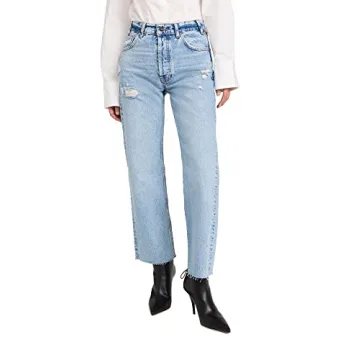 Show moreIntroducing the ANINE BING Women's Gavin Jeans in a stunning washed blue hue, designed to elevate your denim collection with their remarkable blend of style and comfort. Crafted from heavyweight, non-stretch denim, these jeans promise durability while softening beautifully with wear, adapting to your body shape for a flattering fit. With a high rise and straight leg design, they offer a contemporary silhouette that locks in on-trend aesthetics while ensuring maximum comfort. The intricate fading, whiskering details, distressed holes, and frayed hem create a unique vintage flair that makes these jeans suitable for any casual outing or an effortlessly chic ensemble.