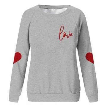 Aniywn Valentines Day Shirts Women Love Heart Print Graphic Tees Cute Long Sleeve Crewneck Tops Casual Sweatshirts Blouses