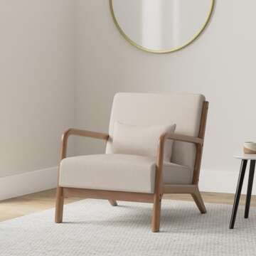 While many competitors offer mid-century modern chairs, the ANJ Modern Arm Chair stands out due to its enhanced cushioning and spongy backrest that provides superior comfort. Unlike others with traditional fabric, our breathable linen-look material ensures a softer touch, and the solid wood frame's exceptional weight capacity offers unrivaled stability. Competitors often charge extra for features like the supportive back pillow – our chair includes it at no additional cost, making it a value-driven choice in a crowded market.