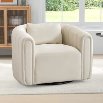 Show moreIndulge yourself in luxurious elegance with the ANJ Velvet Swivel Accent Chair, an exquisite barrel chair that perfectly combines style and comfort. Crafted from luxury velvet fabric, this chair is not only sumptuous to the touch but also breathable, allowing you to revel in countless hours of relaxation. Designed with a specially tailored lumbar pillow that cradles your lower back, it promotes an ergonomic seating position while enveloping you in warmth and coziness. The high-density foam seat cushion transforms your seating experience into a plush sanctuary, making it ideal for reading, unwinding after a long day, or enjoying delightful conversations with friends.