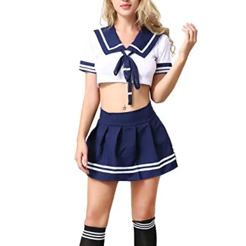 ANJAYLIA Women Lingerie Schoolgirls Outfit - Sailor Costumes with Socks