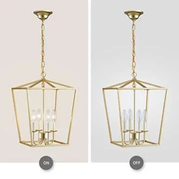 Show more Illuminate your space with the ANJIADENGSHI Vintage Lantern Pendant Light — a masterpiece that perfectly marries elegance with modernity. This farmhouse chandelier features a charming birdcage and candlestick design, a tribute to traditional styles that fits seamlessly into contemporary environments. Crafted with exceptional materials, this pendant lighting fixture offers a delightful glow that adds warmth and sophistication, making it an ideal choice for kitchens, dining rooms, or entryways.