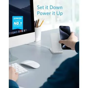 Show more Introducing the ultimate charging companion, the Anker PowerWave Stand, designed to elevate your wireless charging experience to new heights! With its sleek and modern design, this charging stand not only looks great on your desk or nightstand but also provides unparalleled convenience. Imagine never having to hunt for charging cables again; simply position your phone on the stand, and watch it recharge effortlessly. Whether for work or play, the PowerWave Stand's adaptive charging orientation allows you to comfortably watch videos or engage in FaceTime without any interruptions.