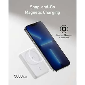 Show moreIntroducing the Anker 521 Magnetic Battery (PowerCore Magnetic 5K) — the epitome of portable charging convenience. Designed specifically for Apple’s iPhone 12 and 13 series, this sleek battery packs a powerful punch with its 5000 mAh capacity, ensuring that your device stays powered throughout the day. With its innovative magnetic alignment, it attaches seamlessly to your iPhone, providing charging without the hassle of cables. Crafted in a sophisticated white finish, it not only complements your iPhone's aesthetics but also serves as a stylish accessory for your tech arsenal.