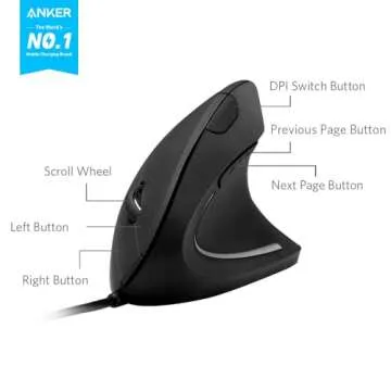 Show moreWelcome to a new era of ergonomic computing with the Anker Ergonomic Optical USB Wired Vertical Mouse. Meticulously crafted to foster optimal wrist and arm alignment, this innovative device encourages a "handshake" position, significantly reducing strain during long hours of use. Perfect for professionals, gamers, or anyone who spends extensive periods in front of a computer, this vertical mouse has a sleek design that not only enhances comfort but also boosts productivity. With advanced features such as 1000/1600 DPI Resolution Optical Tracking Technology, you'll experience precision in every click, making it an absolute game-changer for your computing needs.