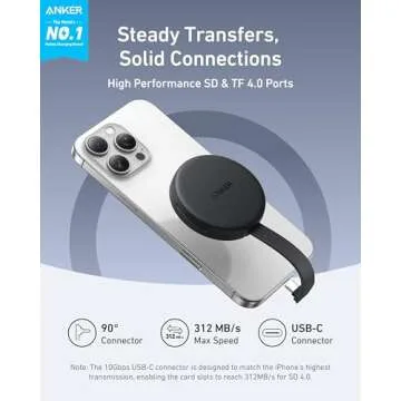 Show moreDiscover the power of seamless data transfer with the Anker MagGo USB-C Adapter, crafted specifically for the latest USB-C iPhone 16/15 Series. This portable and adaptable card reader revolutionizes the way you handle data on the go, featuring high-speed SD and TF 4.0 ports that can deliver a remarkable transfer rate of up to 312MB/s. Perfectly designed to meet the needs of multitaskers and creators, this adapter stands out with its built-in cable and magnetic attachment, ensuring that connectivity is both easy and secure.