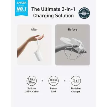 Anker Nano 3-in-1 Portable iPhone Charger, 10,000mAh Power Bank with Built-in USB-C Cable and Foldable Wall Plug, 30W Max Battery Pack, Travel Essentials for iPhone 16/15 Series, Galaxy, MacBook