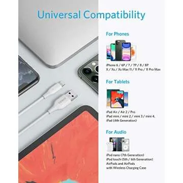 When compared to other cables on the market, the Anker PowerLine Lightning cable stands out due to its unprecedented durability and charging speed. Many standard cables fall short and often create connection issues with Apple devices, leading to frustrating error messages. Additionally, while many competitors offer shorter cable lengths, the 6-foot length of the PowerLine ensures you can easily navigate your space without being tethered to an outlet. Users have praised Anker's commitment to quality and reliability, highlighting its consistent performance that outlasts and outcharges the competition.