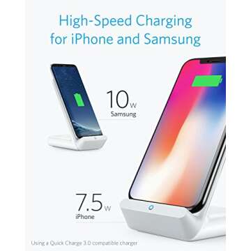 Anker Wireless Charger, PowerWave 7.5 Stand with Internal Cooling Fan, 7.5W for iPhone 11, 11 Pro, 11 Pro Max, Xs Max, XR, XS, X, 8, 8 Plus, 10W for Galaxy S10 S9, Note 10 (with Quick Charge Adapter)