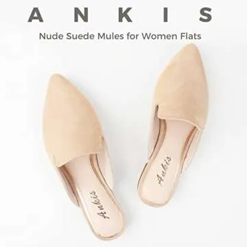 Ankis Mules for Women Flats -Beige Womens Mules Flats Comfortable Pointed Toe Mules for Women Slip on